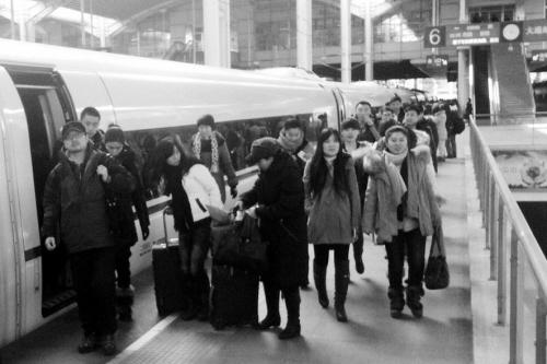 1月26日是2013年春运的第一天,刚刚运行不足两个月的高铁成为了这一年春运的主力军。沈阳晚报记者跟随一位来沈打工的年轻妈妈和她的一对儿女踏上了春运第一天的列车,体验到了今年春运不一样的回乡味道。