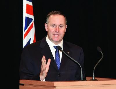 当日,在新西兰首都惠灵顿的议会大厦,新西兰总理约翰·基在记者会上发言。(相关报道见三版)