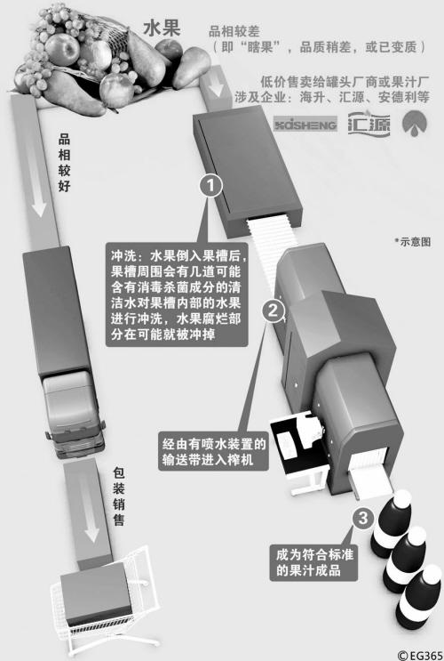 “十一”前后,正是苹果收获的季节。这几天,果农孙继国正在忙着摘果、卖果。听到汇源果汁疑似使用烂果原料的事情,他表示,这一点儿也稀奇,烂果制成果汁的事儿,本来就是公开的秘密。他们村里所有果农家里的烂果都卖给饮料厂去加工果汁了。