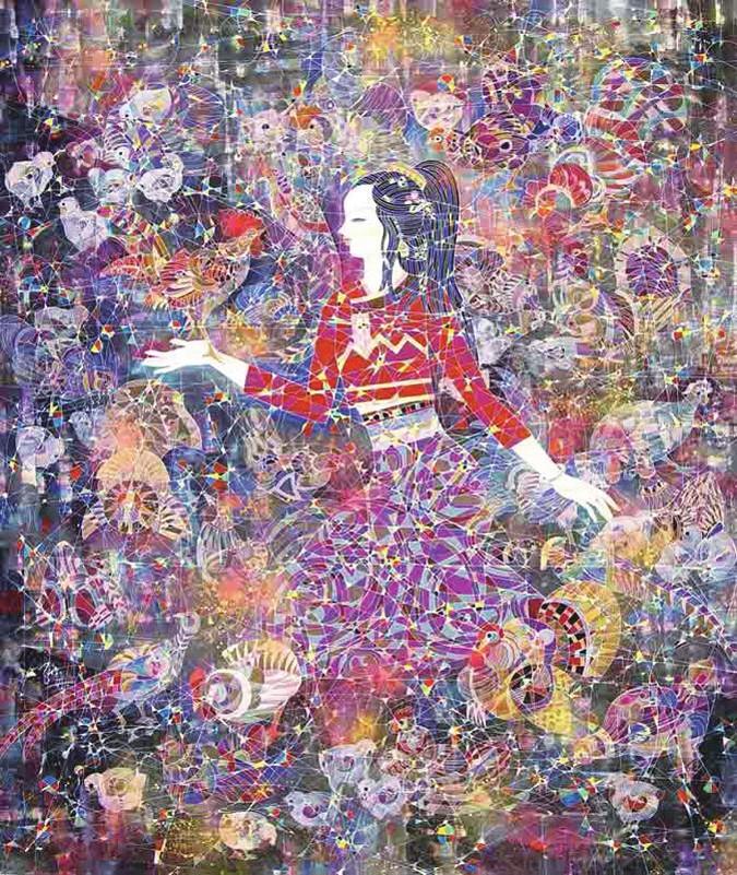 中国人把毛笔用到出神入化,孙建林算一个。白线是最后加上去的,之前他用很多色彩把他的画切割成很小的色彩,这个风格是他的独创。他躲在深山里画画,又不当官,不当院长,只是专心画画。他的作品在香港展出的时候,很多从来没有接触过中国画的外国朋友很感动,因为他们知道这个难度很高、不可思议。