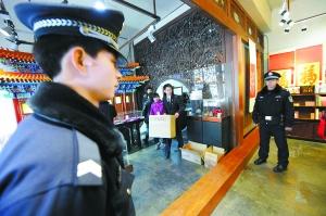▲昨天,朝阳法院在故宫强制执行一起拖欠工资案。被执行人北京莹玮雅集珠宝有限公司拖欠租金和员工工资120余万元。法院查明该公司与故宫博物院合作经营一家文玩店铺,对外出售和展览一些文玩产品,故对该店所有物品进行查封。