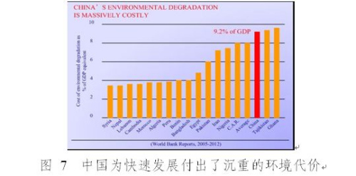 微生物生长最重要的养分是氨氮,氨氮融入气溶胶与微生物相遇,成为微生物快速繁殖的营养剂。氨氮来源于土壤和水源富营养化污染。改革开放以来,中国经济快速发展,也带来严重环境代价,图7显示中国2012年GDP增长7.8%,外部环境损失占GDP的9.2%。