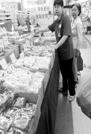 在北京一家大型超市一进门最显眼的地方,各式各样、各种品牌的月饼码放整齐,每个厂家的月饼前都有一名售货员专门负责。月饼的价格从六、七十元到六、七百元一盒不等。盒内一般是4-12块月饼,没有红酒、茶叶等掺杂在盒内。