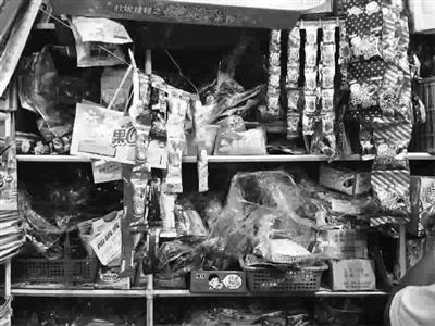 ■ 共富新村小学旁的文具杂货店内,廉价劣质食品塞满货架 本报记者 左妍 摄