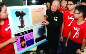 左文来老人在合肥向学生们讲述他亲身经历的原子弹研制故事