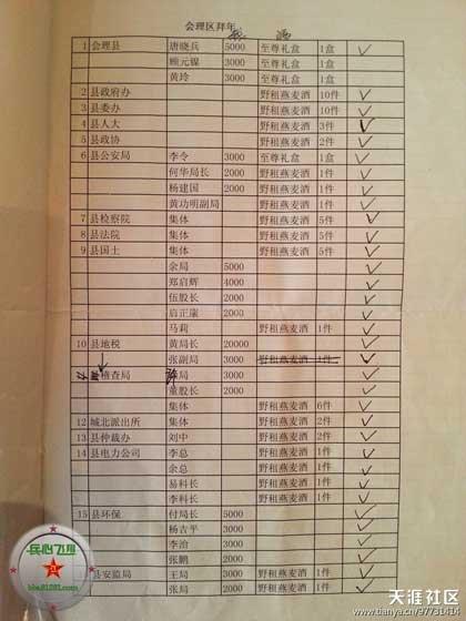 网曝5张送礼清单