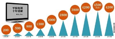奥维咨询预测,2014年国内电视机销量下跌3.8%,为30年来首次负增长。同时据中国电子商会消费电子产品调查办公室调研数据显示,2014年下半年平板电视零售量约为2200万台,全年销量4200万台,同比下降6.7%。预计2015年中国平板电视市场需求将继续维持在4200万台左右,整个彩电市场已进入调整期。