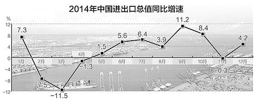 2014年世界经济复苏的步伐缓慢,国际市场需求不振,国内经济下行压力较大。在这种情况下,我国的对外贸易进出口仍然比2013年增长2.3%(按美元计价增长3.4%)。