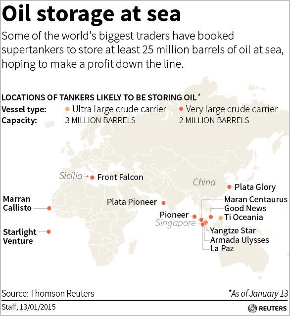 【环球网综合报道】据路透社报道,部分全球最大的石油贸易商最近几天预订超大油轮,用以在海上至少存放2,500万桶的原油,以期趁着油价崩跌之际买进,等待日后大赚一笔。