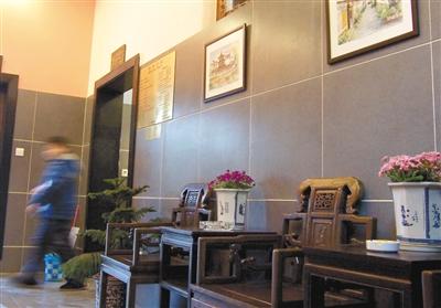 2009年2月15日,南京市夫子庙四星级豪华公厕摆放着仿红木太师椅。图/CFP