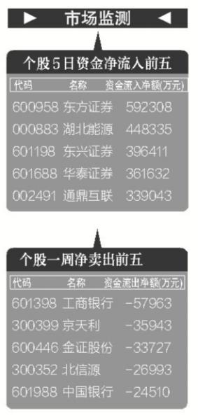 个股方面,两市A股市场上周五共1527只上涨,其中254只非ST股涨停。两市市值超2000千亿的34只个股中,除中国南车停牌外,其余全线上涨,其中东方证券涨停,国信证券涨幅高达7%。截至收盘,上证综指报收4657.60点,涨128.18点,涨幅2.83%,成交10072亿元;深成指报收16045.8点,涨173.27点,涨幅1.09%,成交9877亿元。