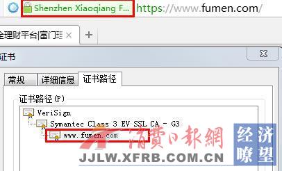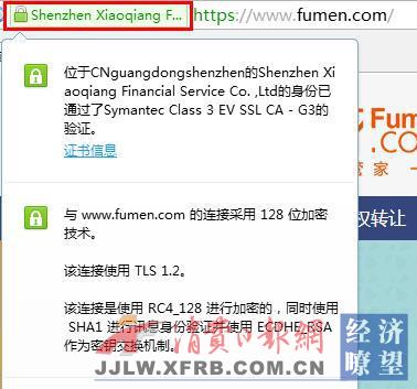 日前,富门理财安全证书正式上线,投资者在输入富门理财官网网址()之后,可以获得通过安全认证的数字证书服务。数字证书通俗讲就是“网络身份证”,在网络交易的过程中可以用于识别对方的身份。富门理财使用了安全认证服务(即数字证书服务),可以保障平台自身的身份真实性(而不是钓鱼网站)。