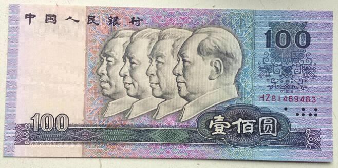 据了解,有四位伟人头像图案的100元人民币,有1980年和1990年两个版,其中彭女士持有的1990版是从1992年8月20日开始发行,与1980版相比,在钞纸中增加了一条固定的金属安全线,并增加了用无色荧光油墨印制的表示面额的汉语拼音和阿拉伯数字。随着印刷技术的进步,后来被银行收回,目前市面上比较少见。