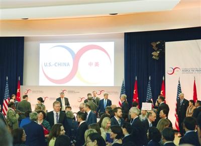 第七轮中美战略与经济对话和第六轮中美人文交流高层磋商开幕式结束后,与会人士在交流。