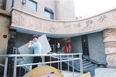 7月23日,已经关门停业的湘鄂情创始门店定慧寺店,工作人员正在将桌椅搬出。