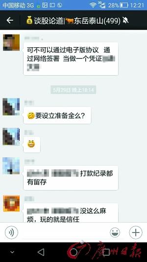 投入10万元的敏叔则没有这么淡定,面对节节下跌的A股,群里的参与者们也开始不淡定起来,“当时有网友建议签个合同或是电子协议,立即有人跳出来反对,说太麻烦,这么不信任干脆不要玩。有个操作团队成员直接说‘目前只能靠自我道德约束’。”然而投入这个项目之后,敏叔就不得不面对深度套牢的结局,“又没有对方的电话,甚至不知道他们的真实姓名,只有一个打款账号的名字,跟手机短信里骗子的账号一样。现在投资缩水了想取出来也不可以,有点后悔了。”