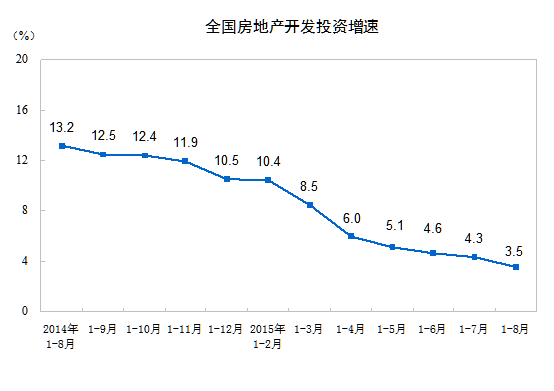 中国前8月房地产开发投资同比增3.5%增速回落0.8%