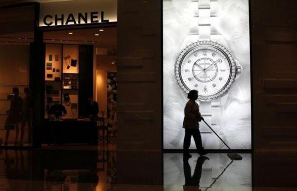 资料图:上海一家香奈儿门店前,清洁工正在清扫地面。(路透社)