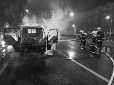 事件:一辆小型货车突然起火,等消防官兵赶到时,驾驶室已被大火吞噬,庐阳中队官兵立即出水灭火。过了大约5分钟,明火基本熄灭。经车主反映,此次着火是因货车车尾部装有易燃的纸箱,遇到火星所导致,车上没有干粉灭火器导致火势扩大。