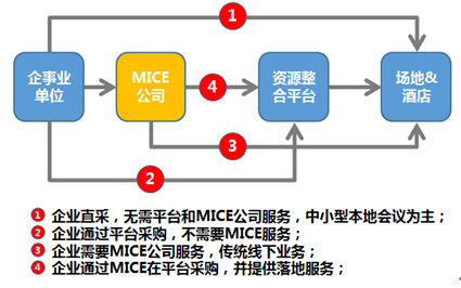 在“互联网+”的浪潮下,线下的传统行业如同经过寒冬之后的春风洗礼,突然之间感受到了互联网对自身行业改造的价值,都在思考如何将线下的业务实体同互联网相结合。会议服务B2B,业内专业称为MICE(Meeting:会议、Inventive:奖励旅游、Conference:大型会议、Exhibition:活动展览的总称,涵盖了企业最重大的公关活动支出),在多年的发展过程中,一直是处于线下沟通、查询、预定、交易等的初级业态,互联网化的程度较低,业务参与主体的痛点明确,急需互联化的手段对MICE行业进行整体的升级和改造。而个人旅行市场经过众多在线企业多年来激烈的充分竞争和对用户在线预定习惯长期沁润培育后,市场格局和服务模式已经笃定。而紧邻的企业商务旅行活动这一典型的to B市场,其企业主体消费模式不断受到个人旅行在线预定的影响,逐渐条件成熟,且因为其巨大的市场容量和想象空间,近年来受到资本和创业者的广泛关注,被认为是下一个互联网创业的风口。