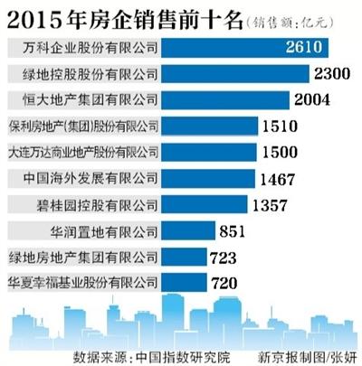 数据显示,2015年千亿房企阵营保持7家,按照销售额由高到低排名分别为万科、绿地控股、恒大地产、保利地产、万达商业地产、中国海外发展、碧桂园。