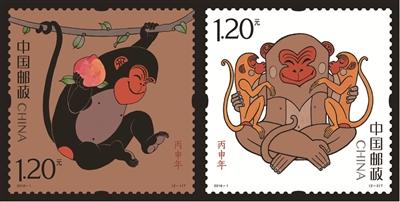 中国邮政定于明天发行《丙申年》特种邮票一套两枚,图案内容分别为:灵猴献瑞、福寿双至。全套邮票面值为2.40元。据了解,这套邮票是我国第四轮生肖邮票的开篇之作,也是首轮猴票的设计者黄永玉时隔36年再执笔。