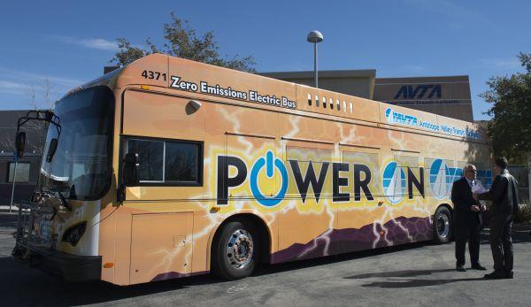 资料图片:中企助力美国建设首个全电力公交地区。2016年2月11日,一辆比亚迪纯电动巴士停在美国大洛杉矶羚羊谷交通局前。新华社记者杨磊摄