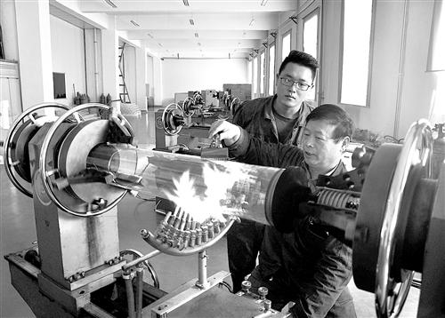 兰州新区大成科技公司生产车间里,工人对太阳能光热组件进行封接。本报记者 陈发明摄