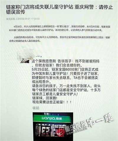 链家成失联儿童守护站?重庆网警:请停止错误宣传