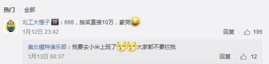 当然,怎么会只有10名员工获奖呢,据微博爆料,小米年会一共有7轮抽奖,第一轮1000个电饭煲;第二轮1000个红米note4;第三轮500个扫地机器人;第四轮100个小米note2;第五轮50个小米MIX;第六轮20个小米电视3S 60寸;第七轮才是这10万大奖啊!