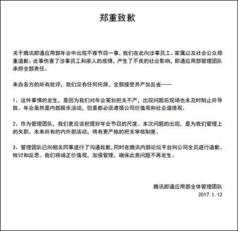 腾讯也对此事件进行了紧急处理,就不雅节目在知乎上发表了声明,向活动相关同事道歉,并且对相关人员记过处罚。