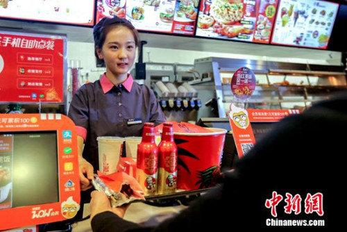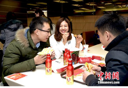 中新网1月16日电 1月16日,青岛啤酒鸿运当头“闻鸡起舞KFC定制版”在山东、河南两地的肯德基店与消费者朋友正式见面。鸡年即将到来,青岛啤酒与肯德基一起给消费者准备的这份惊喜,让大家可以在更多喜闻乐见的场合“遇见”青岛啤酒,在春节期间畅享欢聚,享受团圆美好时光。