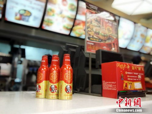 春节期间,山东与河南两省大部分肯德基餐厅将推出肯德基新春“鸿运”全家桶,当季全国版新春全家桶中有四杯可乐,而山东和河南的肯德基新春“鸿运”全家桶会将其中两杯可乐替换为两瓶355毫升的青岛啤酒鸿运当头“闻鸡起舞KFC定制版”,让成年消费者有更多选择。本次准备的青岛啤酒总计12万瓶,售完即止。