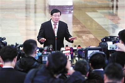 昨日,十二届全国人大五次会议闭幕会前“部长通道”上,全国社保基金理事会理事长楼继伟接受记者采访。