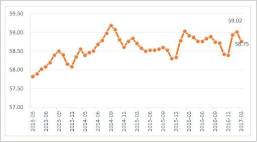 2017年1月份,只有北京的指数值处于50上方,前五位的省市依次为北京、安徽、上海、江苏、湖南。2月份,指数值位于50以上的省市增加到5个,依次为广东、山东、辽宁、浙江、宁夏。3月份,统计到的指数值位于50以上的省市进一步增加到26个,前五位依次为河北、天津、安徽、内蒙、江西。