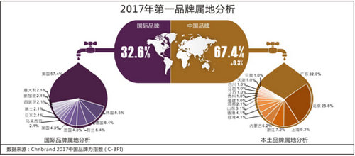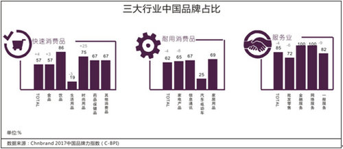 图说:2017年C-BPI三大行业(快消、耐消、服务业)中国品牌占比数据图
