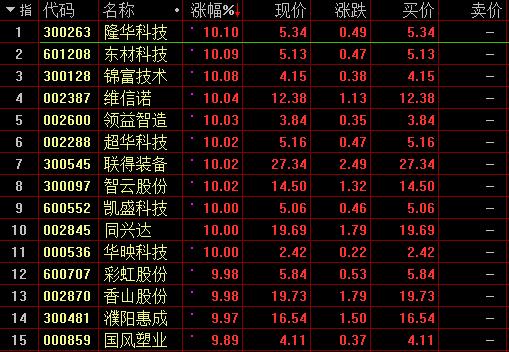 OLED概念延续13日活跃态势,仍领涨概念板块,涨幅达3.18%。个股上看,隆华科技、东材科技、锦富技术、维信诺等15只个股涨停。