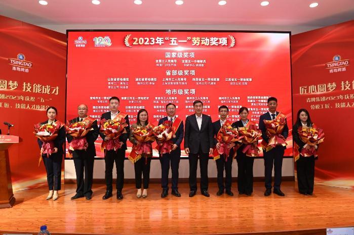 青岛啤酒对2023年获得全国、省、市各级政府的表彰与奖励38个先进集体和模范个人给予集中表彰。青岛啤酒集团党委书记、董事长黄克兴向实干创新的青啤劳动者致以崇高敬意与节日祝贺。他说今年是实施“十四五”规划承前启后的关键一年,也是青岛啤酒成立120周年。站在这个时间节点抚今追昔,我们更加深刻地认识到劳动的意义和奋斗的价值。企业高质量发展的实现,精神是根基,文化是土壤,技能是保障。我们要坚定“有理想守信念”的精神底座、“懂技术会创新”的主攻方向、“敢担当讲奉献”的价值追求,争做学习标兵、技术骨干、创新能手,在推动中国式现代化青啤实践中展现新担当、作出新贡献。