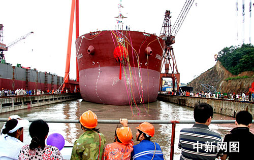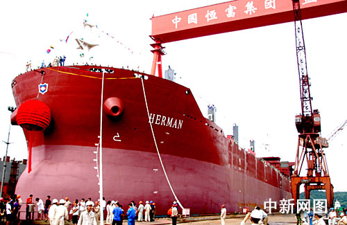 此次下水的HB2007船是蓝天造船基地建成后,为德国两大“国际航运巨头”承造8艘57000吨巴拿马型散装货船首批订单中的首制船。(完)