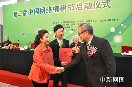 中国人口福利基金会副理事长苗霞、联合国环境规划署驻华代表处代表张世钢,以及各界代表出席了本次启动仪式,著名歌唱家刘媛媛出任2010年第二届“中国网络植树节”形象宣传大使,同时由东南卫视组建“东南卫视公益明星团”,联合腾讯网等网络将开展“第二届中国网络植树节”e-tree公益活动。