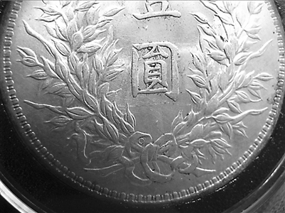 该币是原色原光,底版干净,包浆自然,品相较好,齿轮规整,间隔有规律,声音纯正婉转且沉稳,确为老银币。但随着高科技造假技术的发展,鉴定此类银元必须要看“韵味”,仔细观察会发现这枚银元袁世凯头像的双眼皮刻画得十分清晰,眼睛中还微微透着亮光,但眉毛、胡须并不是特别精致,更多地追求神似。而假币往往人物眉毛、胡须等刻画得比真币还要精细,却忽略了人物的神情。(实习记者李斌)