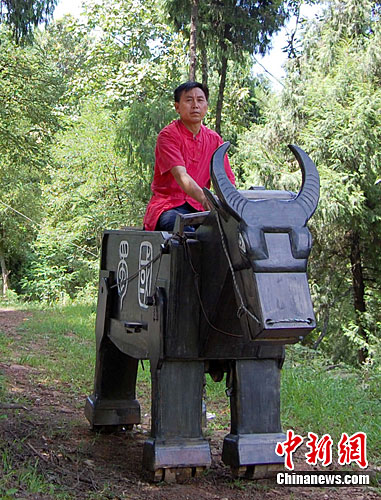 据悉,何多现新造的制“木牛流马”长2.08米,高1.4米,自重230斤。腹中可载420至450斤大米,后肢可以前后屈膝,以手推或牵为动力,可以行走在乡间小路,还可爬坡上行。(完)