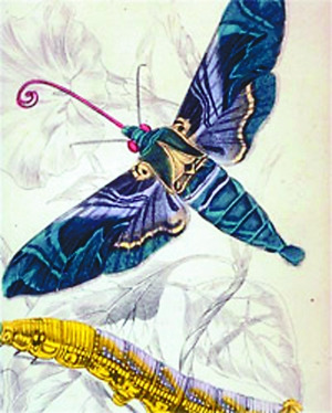 达尔文在种植和研究了一些本土兰花品种后发现,兰花的复杂花形正是为了吸引特殊品种的昆虫来为自己授粉。这些昆虫的外形都与某一亚种的兰花非常匹配。这就如同加拉帕戈斯雀的鸟喙,每种形态都与特定的食物来源相适应。以伯利恒兰为例,这种花的花蜜存储在30厘米深的花朵底部。当达尔文看到花的结构时,便预测有一种与之匹配的动物存在。果然,在1903年,科学家发现长喙天蛾,它的长喙特别适合伸到兰花的花蜜管底部。