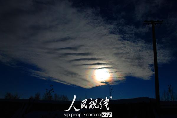 据了解,自11月7日以来,新疆阿勒泰降下了今冬的第一场大雪,20日天气转晴后,由于云彩中水气较重,在阳光的照射下出现“七彩祥云”奇观。(刘新海/人民视线)