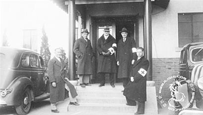 1937年12月13日南京国际安全区总部成员:Zial(俄罗斯),哈兹(奥地利),拉贝(德国,安全区委员会主席),约翰·马吉(美国),帕德斯瓦罗夫(白俄罗斯)。