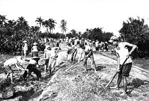 1952年8月1日,中央决定修建海南岛海榆中线公路。该线设计起点于海口市秀英,经屯昌、琼中,至南端终点崖县榆林。线路分南北两段:北段从秀英至什运191公里,南段从什运至榆林105公里。解放军工程第一、第二师近万名指战员,与全岛征调的10万名民工一起,开始了堪称艰苦卓绝的修路征程。