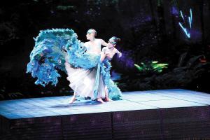 央视龙年春晚,孔雀公主杨丽萍和她的舞伴王迪表演的《雀之恋》,被誉为“春晚最震撼的节目”。两位舞者在犹如“阿凡达”般的幻境中演绎孔雀的相依爱恋,将东方传统的舞蹈艺术与西方后现代概念巧妙结合,在春晚舞台上为全国观众呈现了一段全新的美学体验,这种美学也被杨丽萍称为“新东方美学”。春晚过后,王迪立即回到广州排练,随后启程去加拿大开始了为期一个月的演出。2月3日,本报记者通过越洋电话采访了这位完美诠释雄孔雀的舞者。 灵感与智慧铸就《雀之恋》
