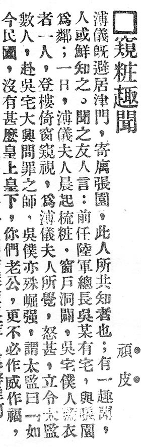 皇权在消逝,民权却在滋生。“偷窥”皇后事件至少证明民国年间,一些底层民众已经摈弃了传统中君臣的尊卑观念,萌生了朴素的民权意识,这是辛亥革命后西方平等自由思想在中国民众中普及的结果,是一件好事。