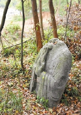 石虎的身后就是青山垄,杂草丛生,枝林茂盛,往里走,类似“残废”掉的石虎还有两个,另外在树林里面,还立着两个半人高的石俑,不过,头已经没了。