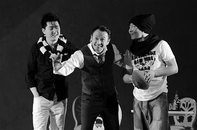 丁志诚(中)扮演的威利一心要把自己的成功梦想灌输给两个儿子。新京报记者 郭延冰 摄